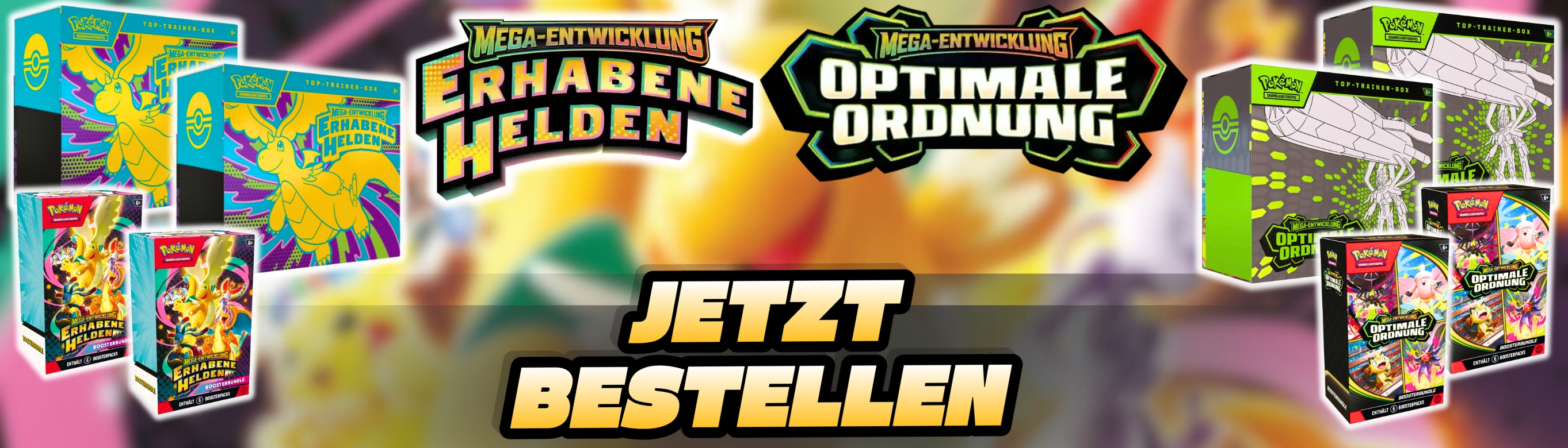 Sieh mit ehrfürchtigem Staunen zu, wie Mega-Dragoran-ex in die Lüfte emporsteigt und eine Pokémon-Starbesetzung in den Kampf führt! Trainer-Pokémon und Stellar-Terakristall-Pokémon-ex verbünden sich mit zurückkehrenden und neu entdeckten Mega-Entwicklungs-Pokémon-ex, von denen einige in ganz besonderen Illustrationen ihre größten und kühnsten Attacken zur Schau stellen. Feiere die Stars aus Karmesin & Purpur und den Anbruch von Mega-Entwicklung mit der Pokémon-Sammelkartenspiel-Erweiterung Mega-Entwicklung - Erhabene Helden!